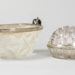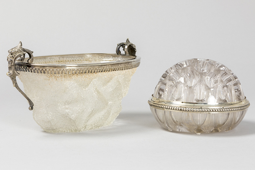 Lot (2) kleurloos kristalglas met een coupe met een montuur gemerkt Peters & Steffens & een pique-fleurs met montuur in gemerkt massief zilver