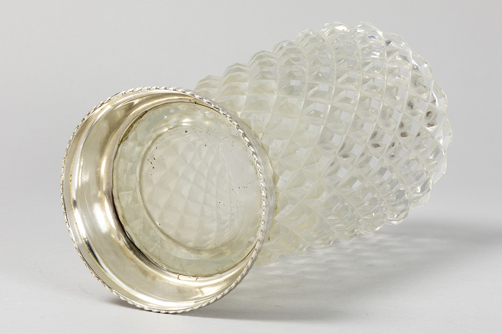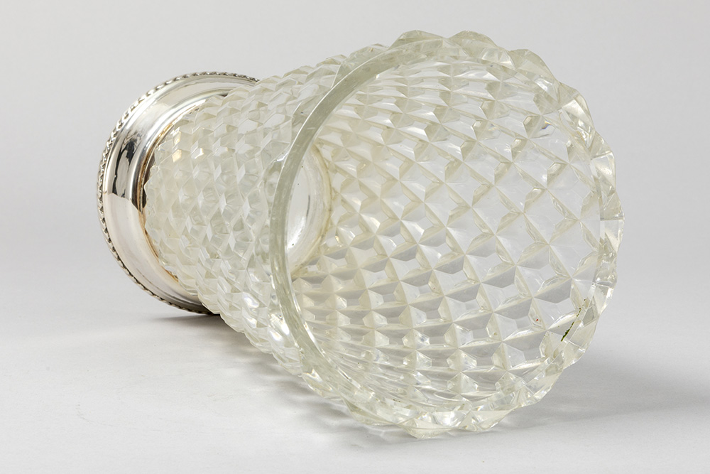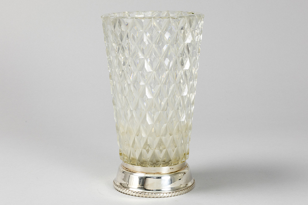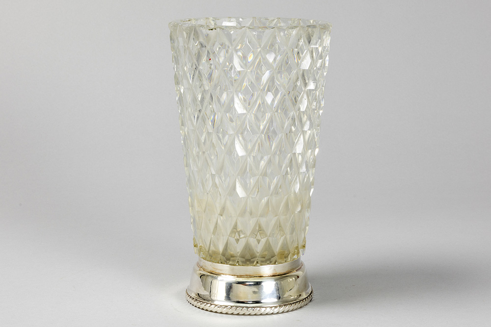 DELHEID vaas in kleurloos kristal Val-St-Lambert met een basis in gemerkt massief zilver – hoogte : 26 cm getekend
