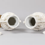 Paar antieke neoclassicistische gedekselde vazen in biscuit met basis in gedoreerd metaal – hoogte : 57 cm