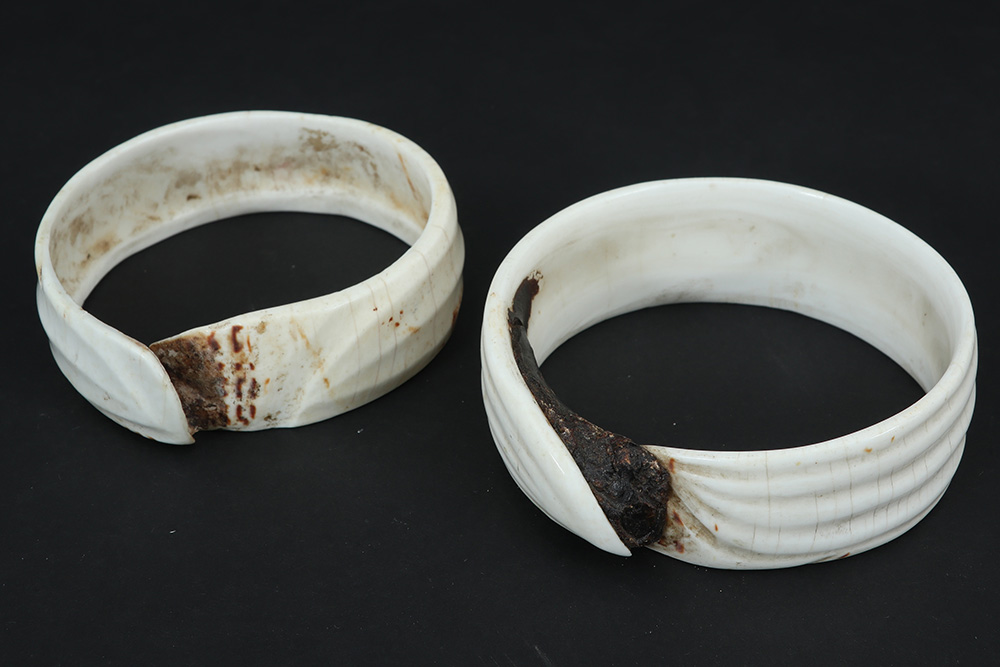 two Polynesian bracelets in shell with remains of vegetal resin