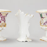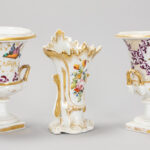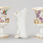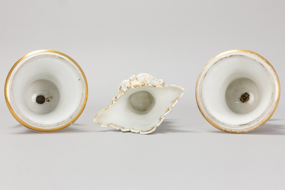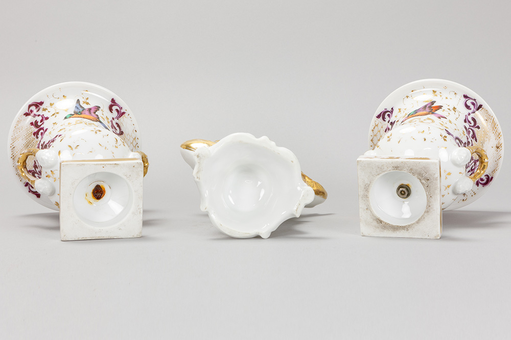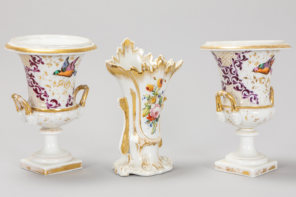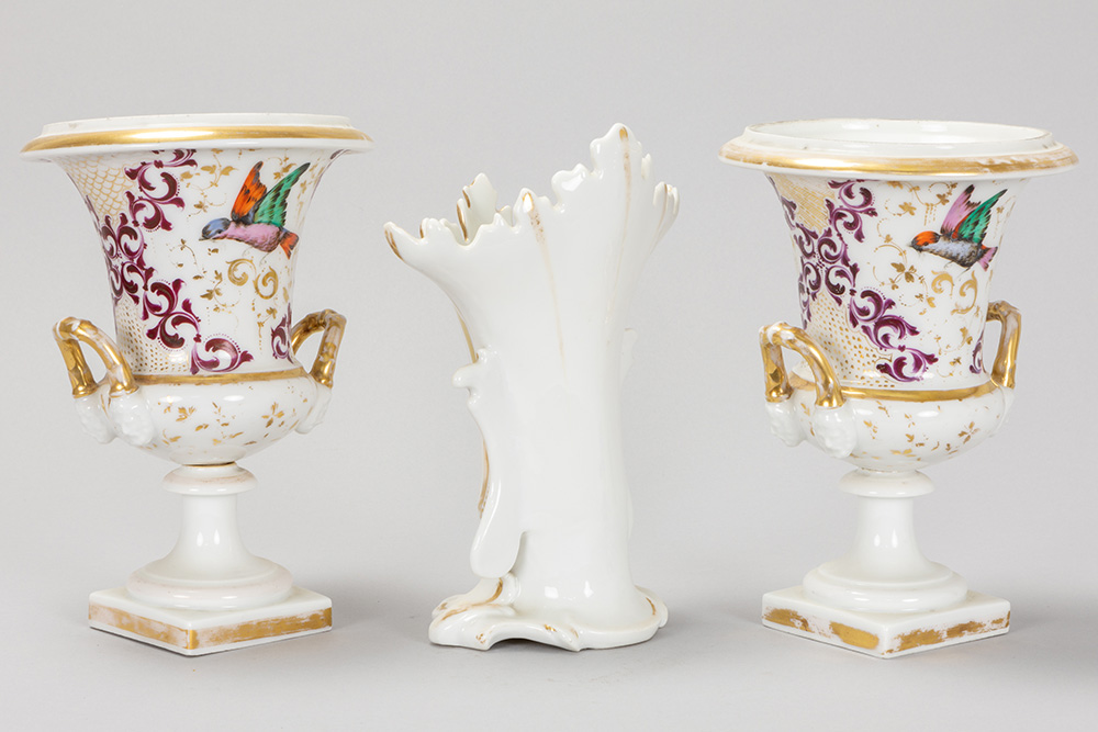 Lot (3) antiek “oud Brussels” porselein met een cornetvaas en een paar urnvormige Empire-vazen
