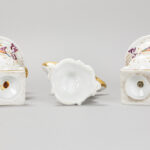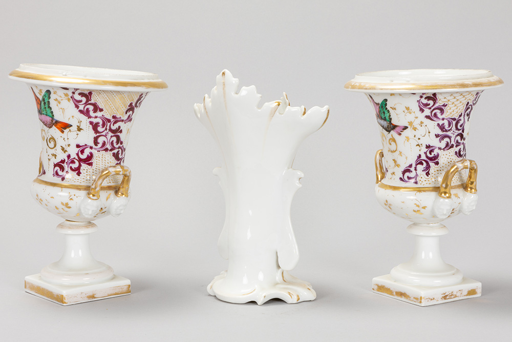 three pieces of antique porcelain from Brussels with a pair Empire style urns
