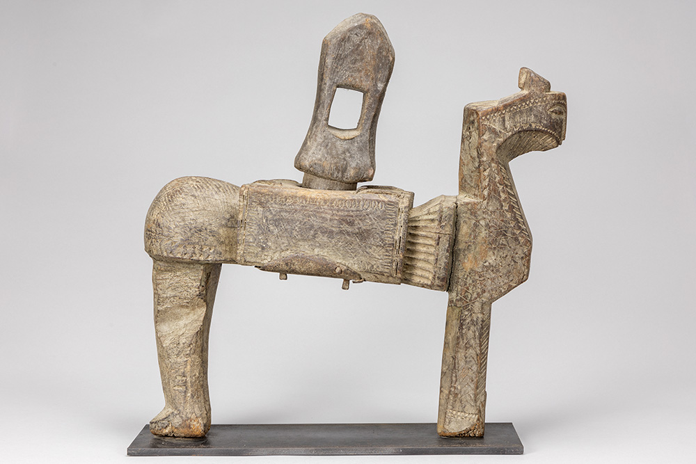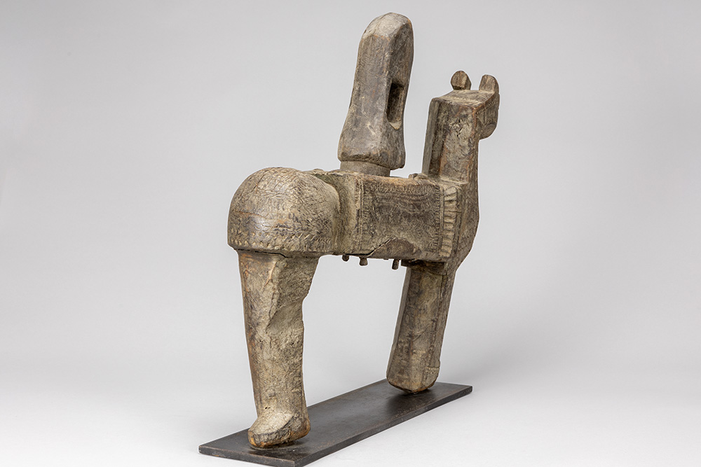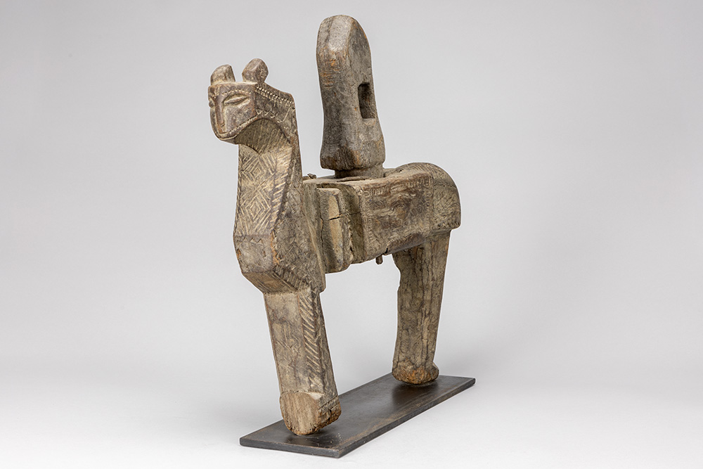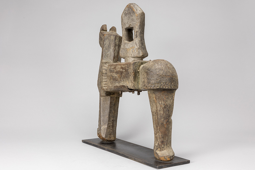 WESTELIJKE HIMALAYA – GEBIEDEN – 19° EEUW spaghettimaker (55 x 53 cm) in een lokale hardhoutsoort en in de vorm van een dier met menselijk gelaat, waarbij duidelijke iconografische invloeden van de Macedonische kunst te zien zijn, vermoedelijk een gevolg van de veroveringen van Alexander de grote in deze gebieden