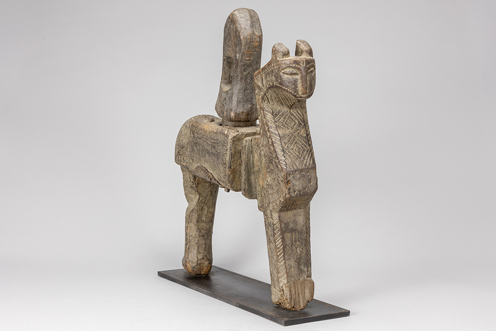19th Cent. Western Himalayan spaghetti-maker in a local hardwood with animal features with human face, where clear iconographic influences from Macedonian art can be seen, probably a result of Alexander the Great’s conquests in these areas