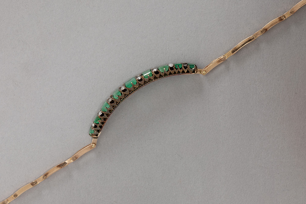 antique bracelet in pink gold (14 carat) with emeralds and rose-cut diamonds