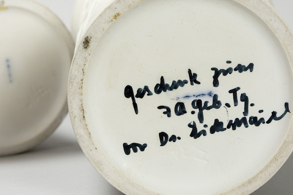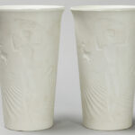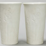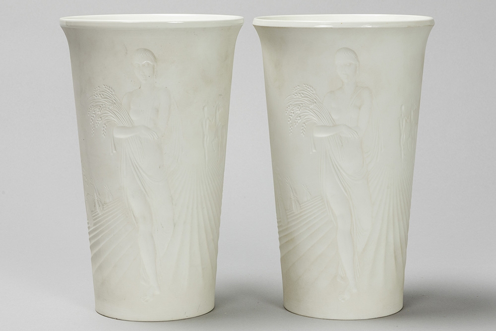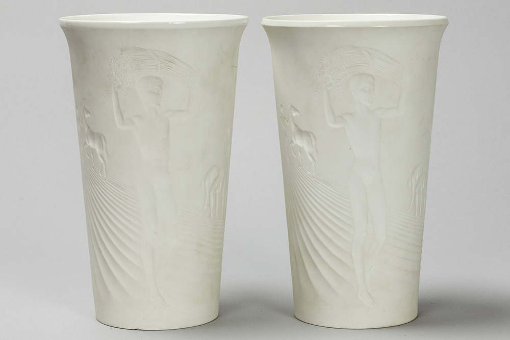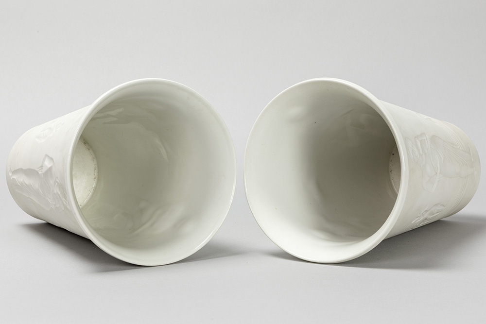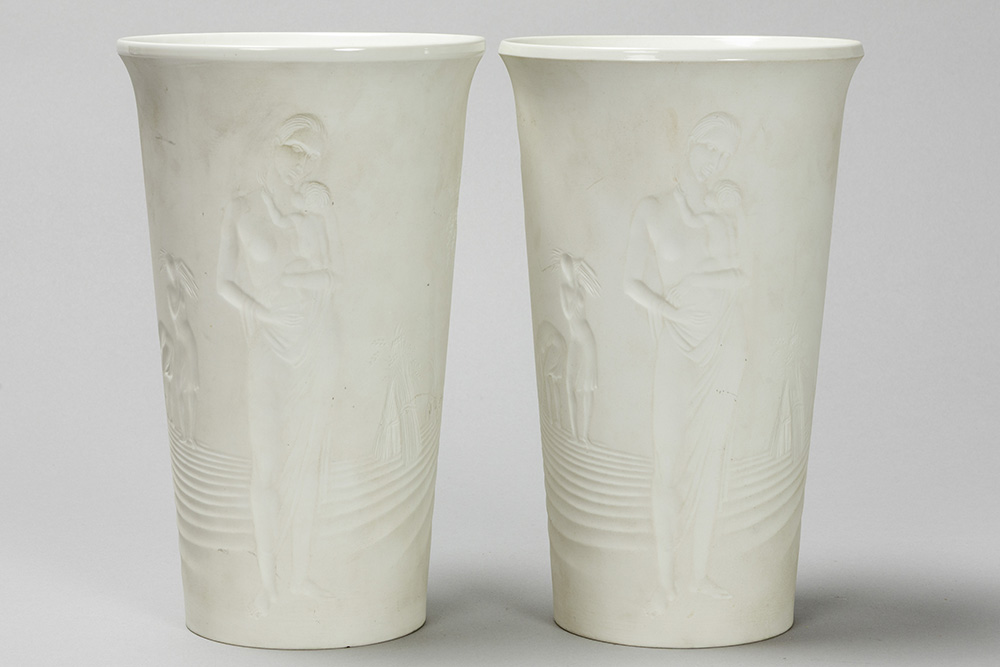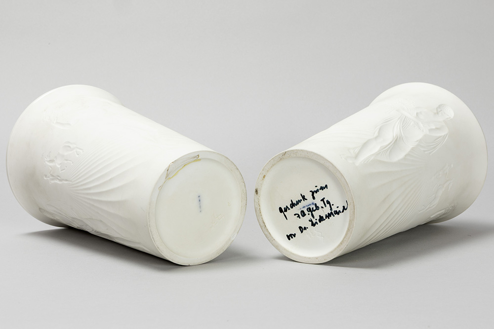 pair of sixties’ design vases in Berlin marked biscuit-porcelain with decor in relief with Adam and Eve