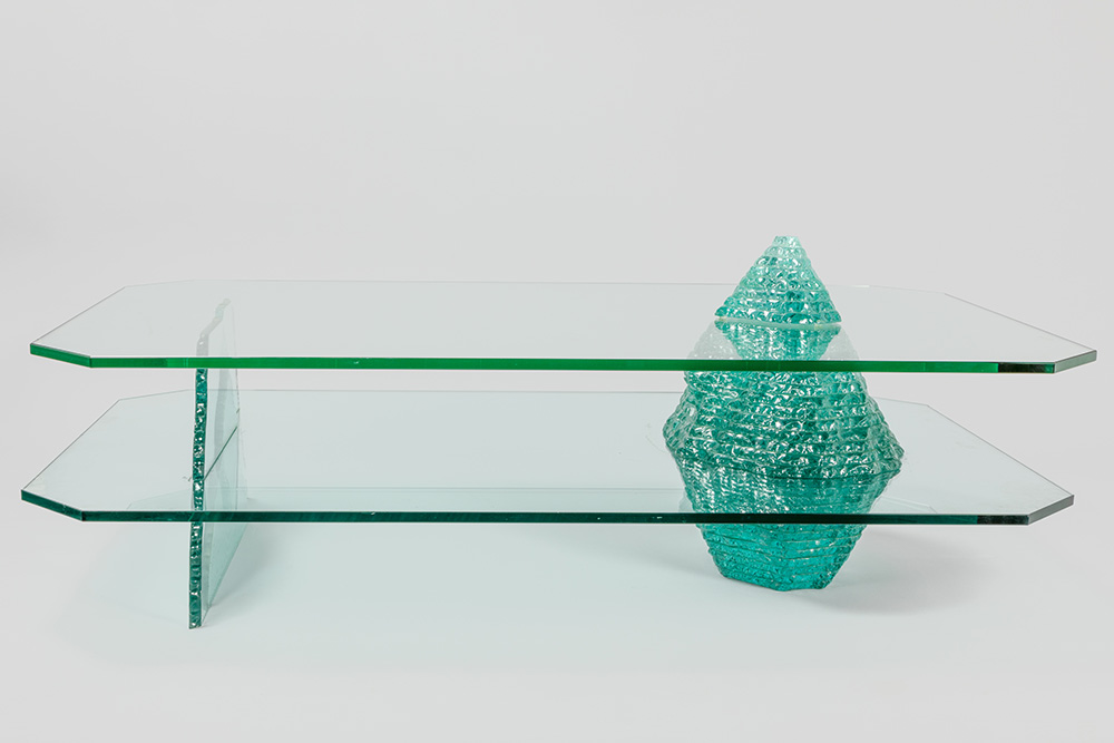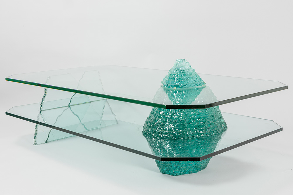 Salontafel met een design van de jaren ’70/’80 volledig in glas – 39 x 140 x 80 cm