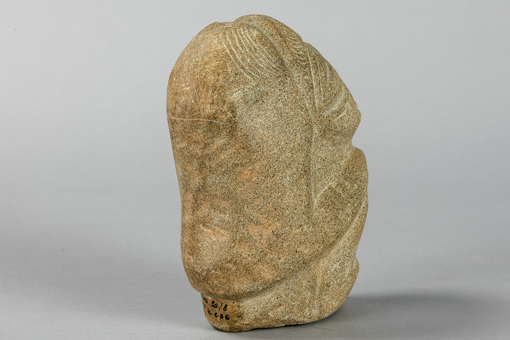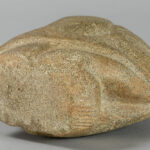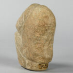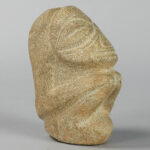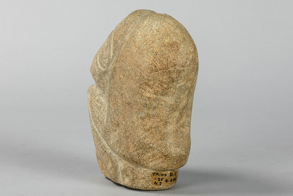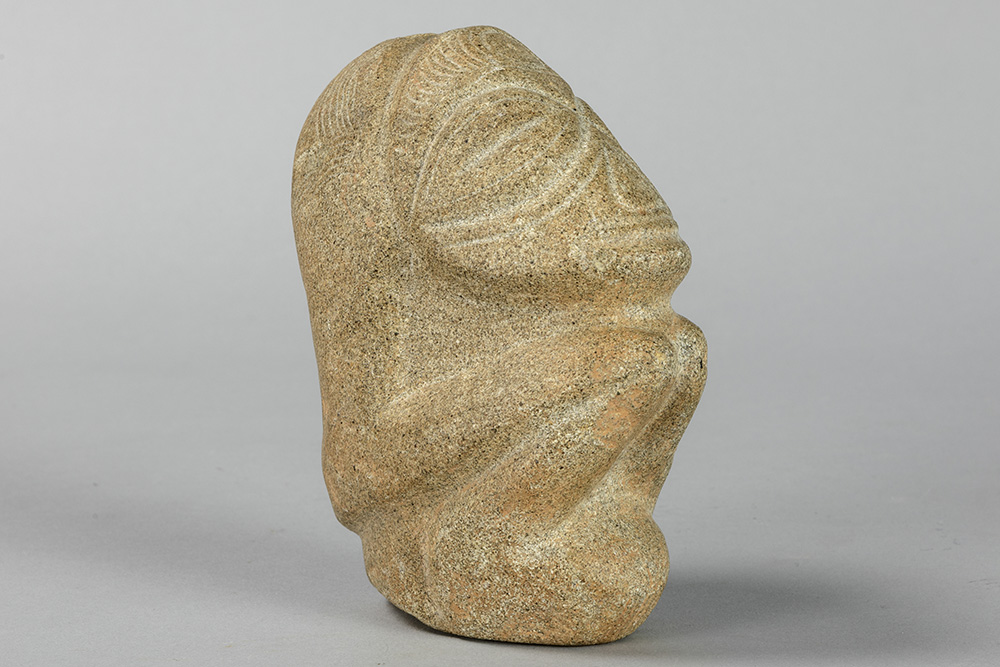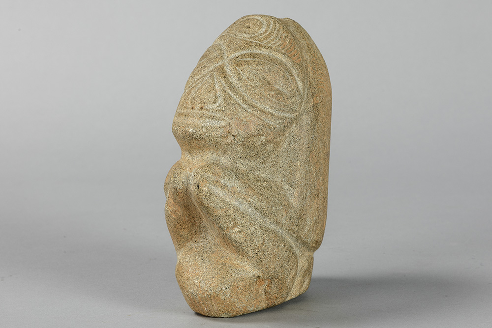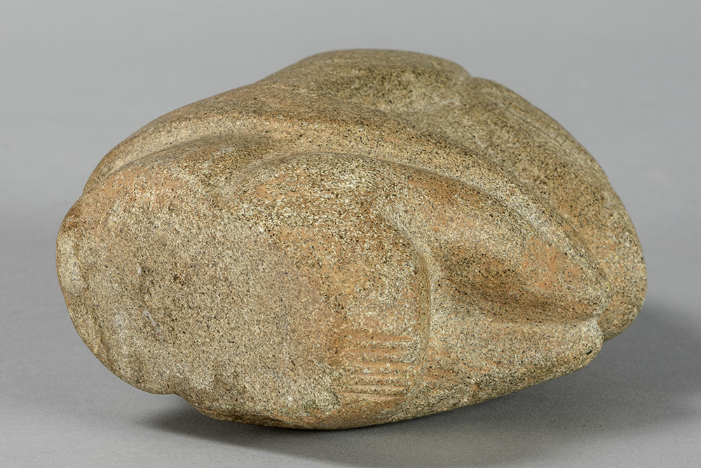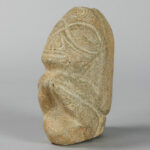 CARAÏBISCHE GEBIEDEN – TAINO-CULTUUR sculptuur in steen met een typische gestileerde voorstelling van een hurkend figuur – hoogte : 13,5 cm met certificaat