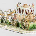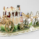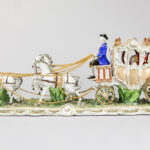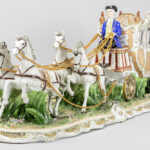 large group with figures, coach and horses in porcelain marked with crosses swords – the chains are in gilded metal