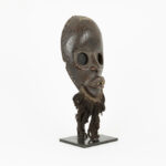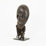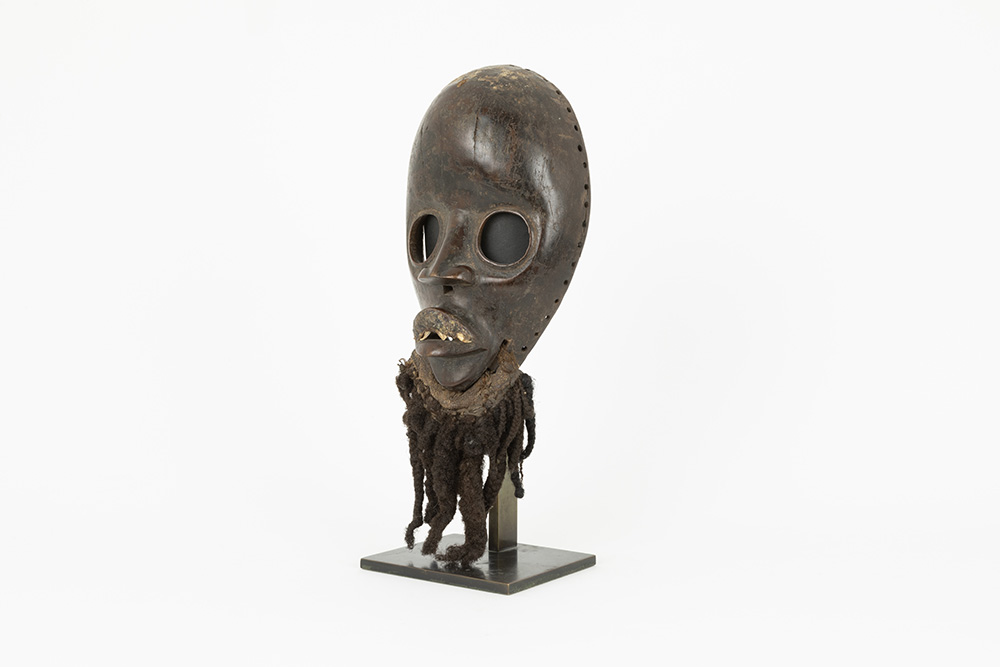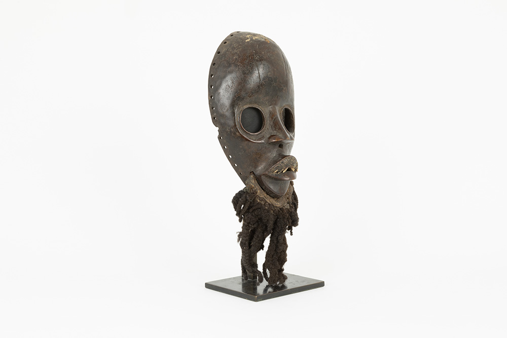 AFRIKA – IVOORKUST – eind 19°/begin 20° EEUW zgn vuurmasker (ook lopermasker genoemd) van de “Dan” in hout met originele baard gemaakt van mensenhaar en originele harslaag op de bovenlip – hoogte : 30 cm prov : ex-collectie Michel Gauld, St-Tropez met certificaat van “Amma Tribal Art”