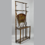 Laat negentiende eeuwse, allicht Franse “Japanse stijl” – kapstok met paraplubak in hout met bamboe-look en met ingewerkt gelakt paneel met fazant – ca 1880/90 – 175 x 84 x 29 cm