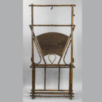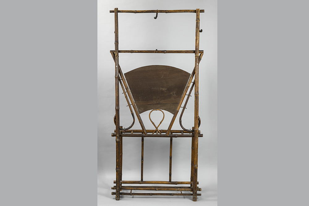 late 19th Cent. presumably French “Japan” style coatrack in wood with bamboo look and with a lacquered panel with decor with a pheasant