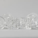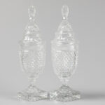 Paar gedekselde zgn drageoirs in kleurloos geslepen kristal Val-St-Lambert – hoogte : 43 cm