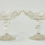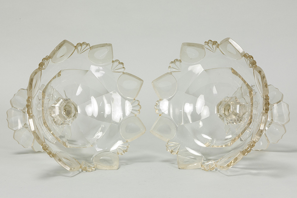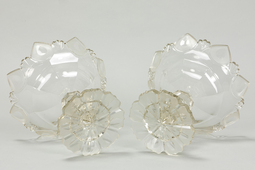 Paar antieke fruitschalen op voet in geslepen, kleurloos kristal (mogelijk Baccarat) – diameter : 22 cm