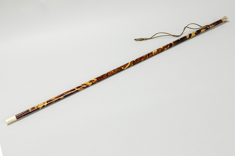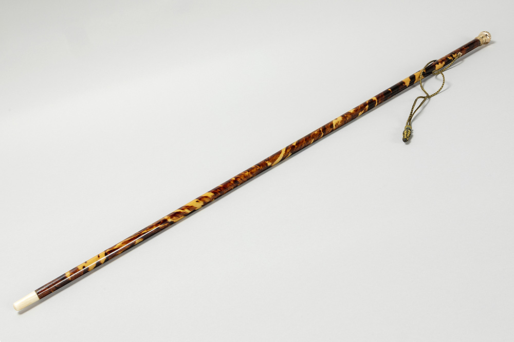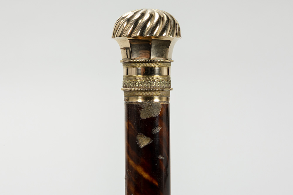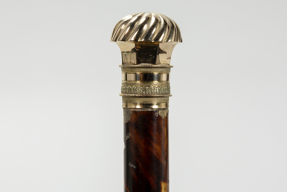 very rare walking stick with its stick in tortoiseshell and its grip in yellow gold