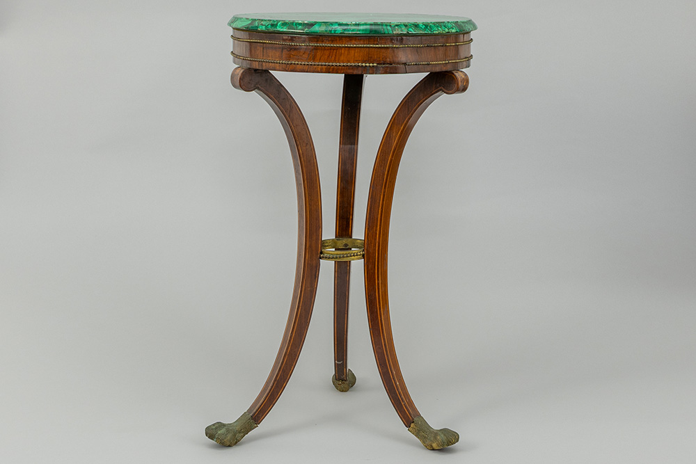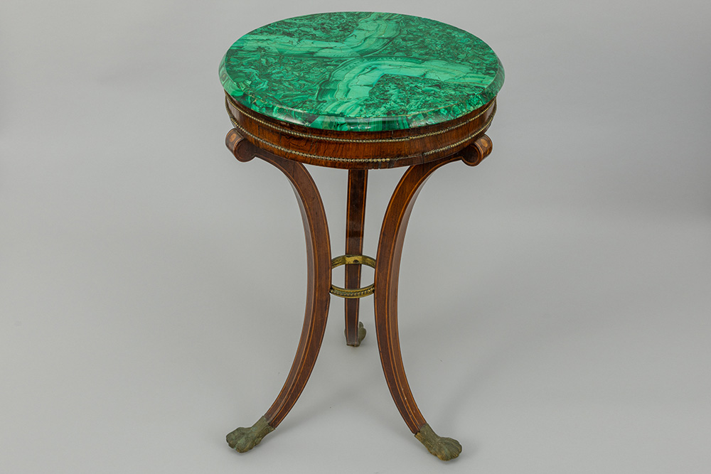 small ‘antique’ neoclassical style table in mahogany with a malachite top