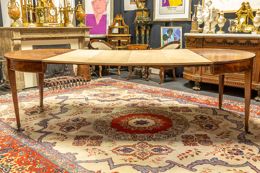 Antieke neoclassicistische tafel in acajou met ovaal verlengbaar blad op vier poten – 79 x 148 x 117 (+ 38 + 38 + 38 + 38) cm