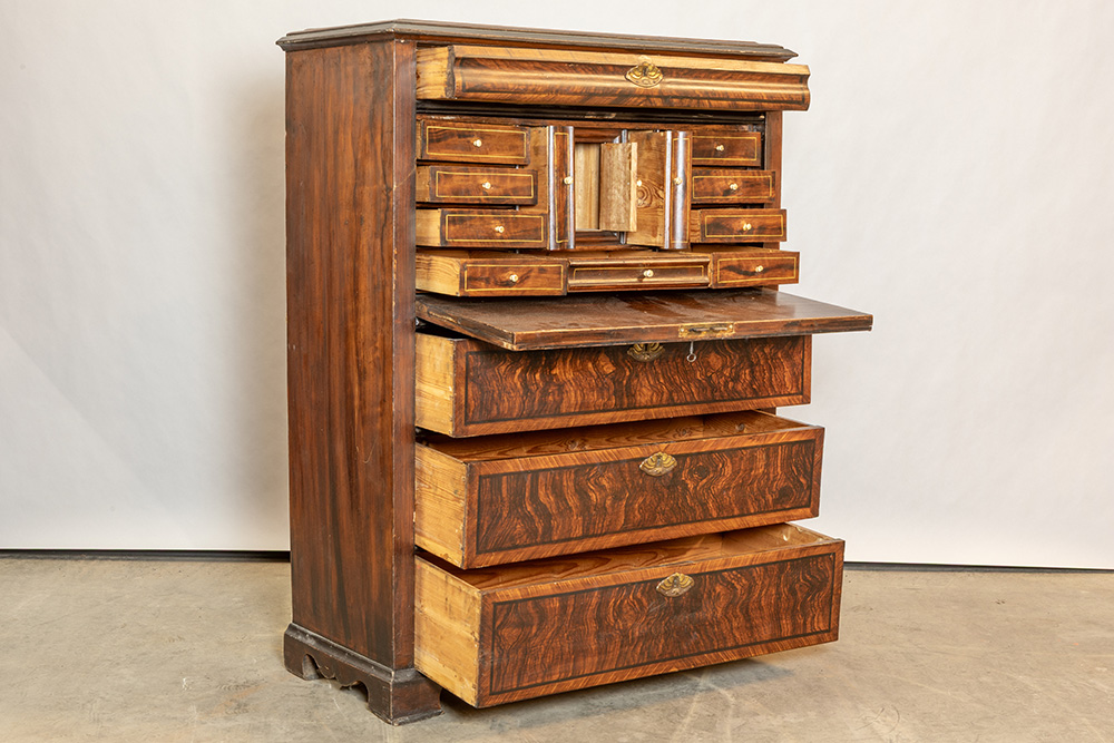 Negentiende eeuws Biedermeier-meubel in mooi gevlamd fruithout met twee deuren en een binnenkoffer – 136 x 105 x 46 cm