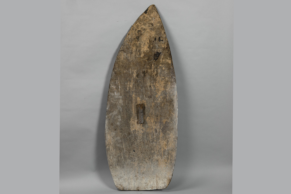 ceremonial Asmat shield in wood with typical carvings and pigments