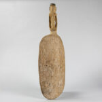 IRIAN JAYA / CENTRAAL ASMAT Sago-bowl in hout met typische inkervingen en pigmenten, bekroond met een antropomorfe figuur – hoogte : 87 cm gecollecteerd in Otsjanep collectie Prigogine