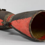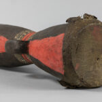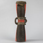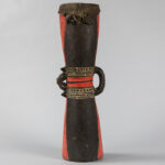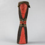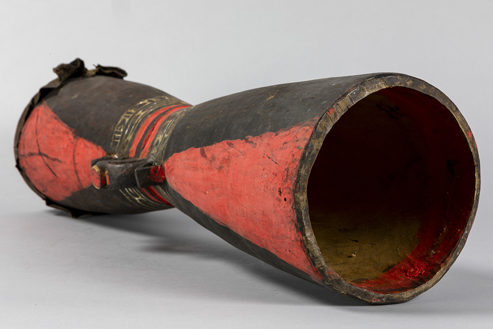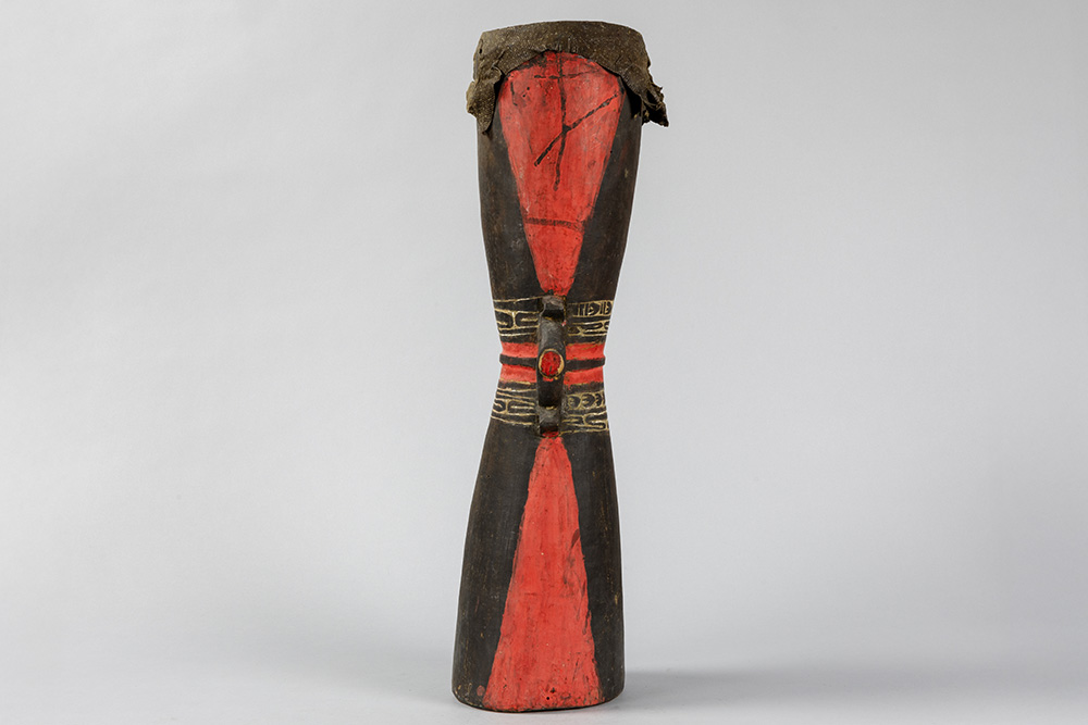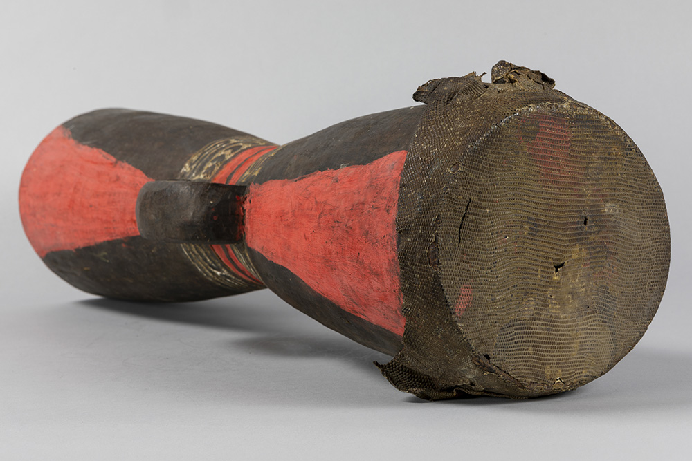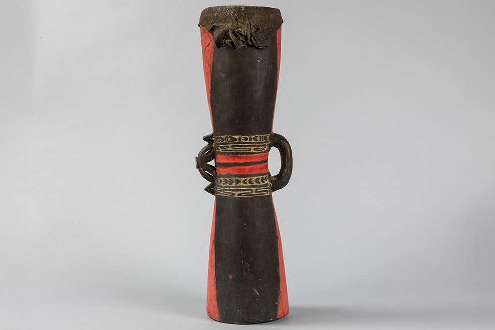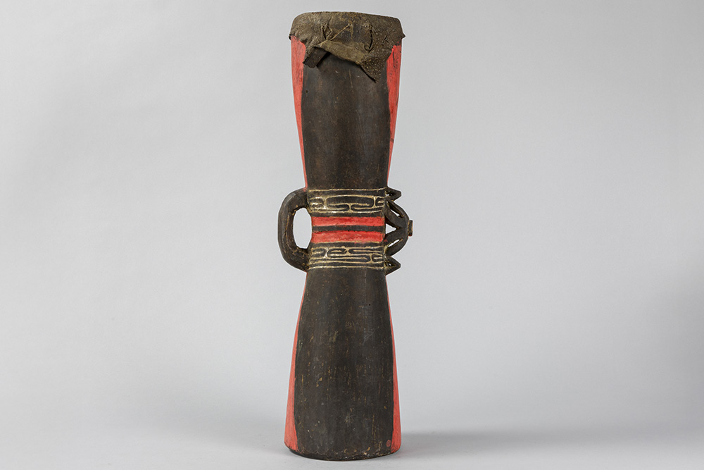 Papua New Guinean ceremonial Sepik drum in painted wood and reptile skin
