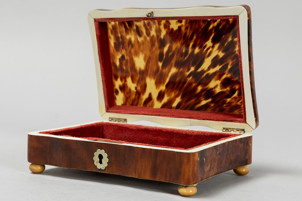 Antiek Hollands lepeldoosje in schildpad – 6,5 x 16,5 x 10,5 cm