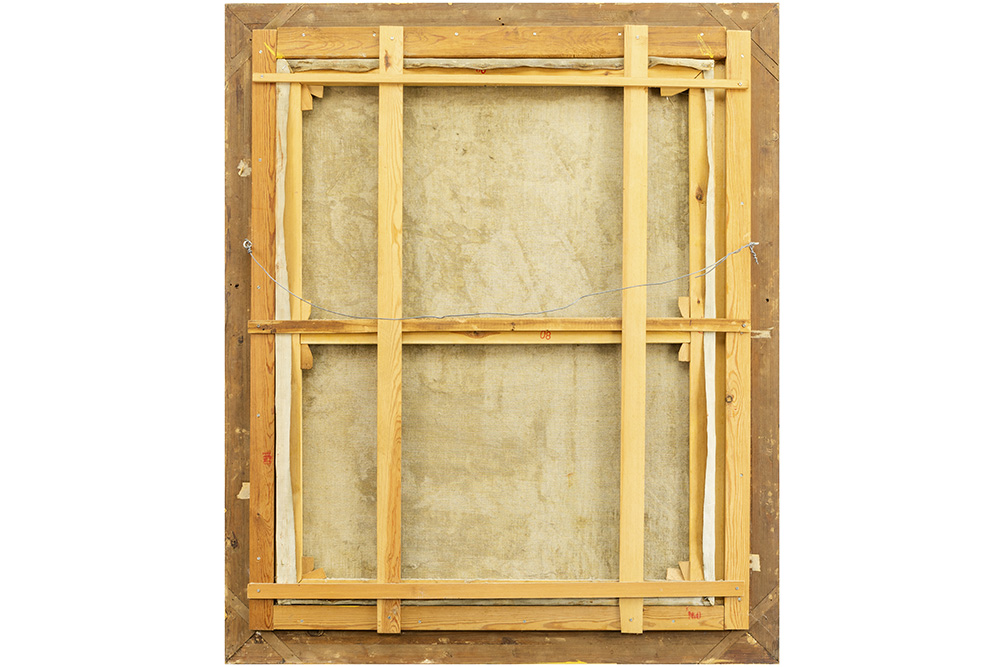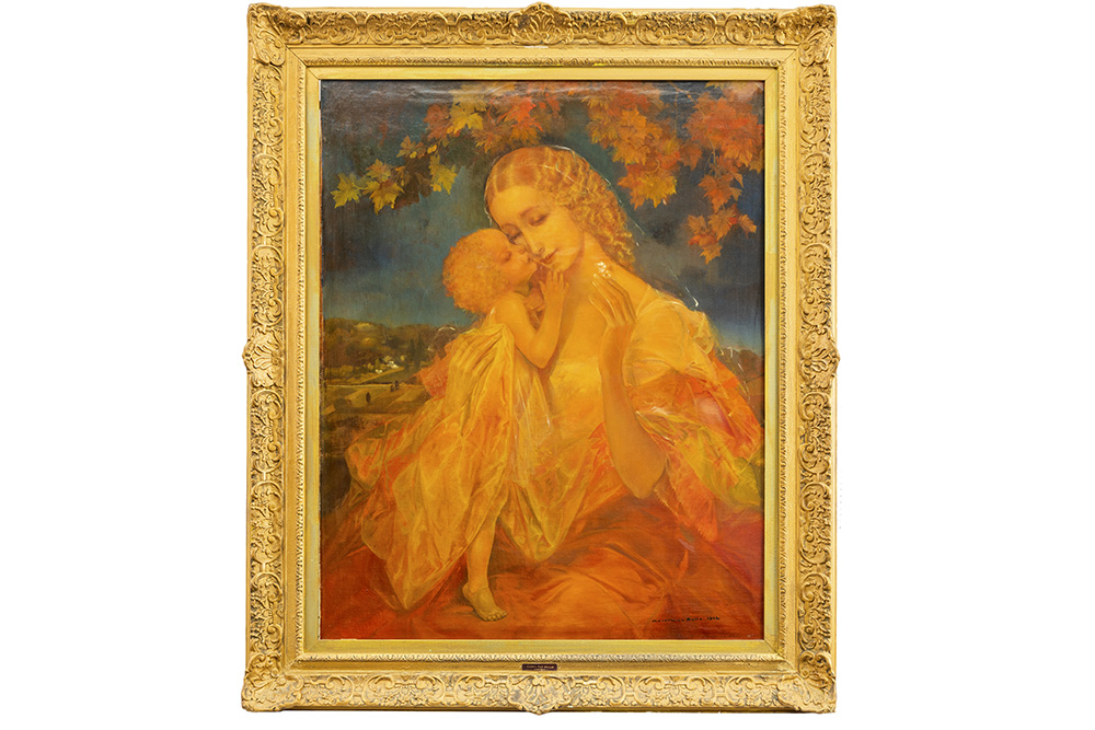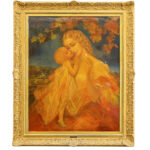 VAN BELLE KAREL (1884 – 1959) olieverfschilderij op doek : “Moeder met sluier op het hoofd en met kind in de armen” – 100 x 80 getekend