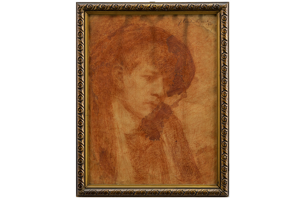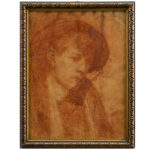 VAN DE VEEGAETE JULIEN (1886 – 1960) sanguine met symbolistisch thema : “Mijmerende vrouw” – getekend en gedateerd 1911
