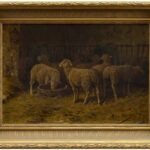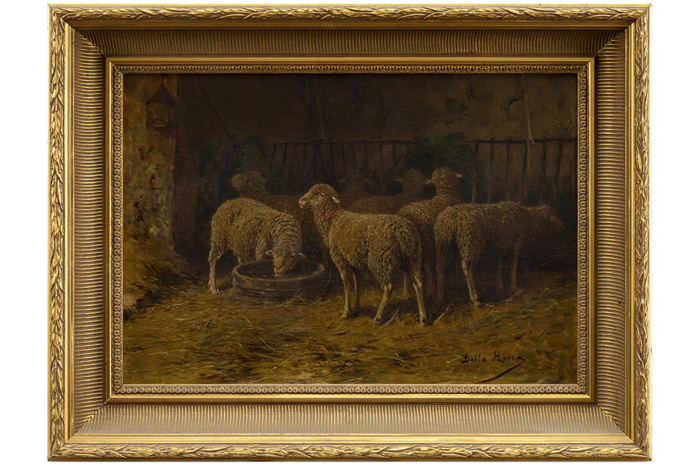 DELLA ROCCA GIOVANNI (1788 – 1858) Italiaans olieverfschilderij op doek : “Schapen in stal” – 38,5 x 55 getekend