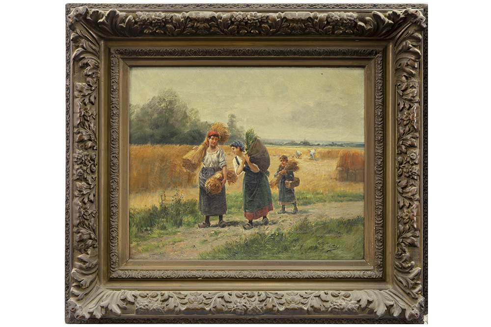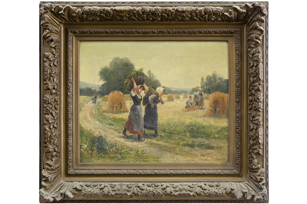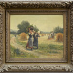 Pendant negentiende eeuwse Italiaanse olieverfschilderijen op doek : “Jonge boerinnetjes” – 38 x 46