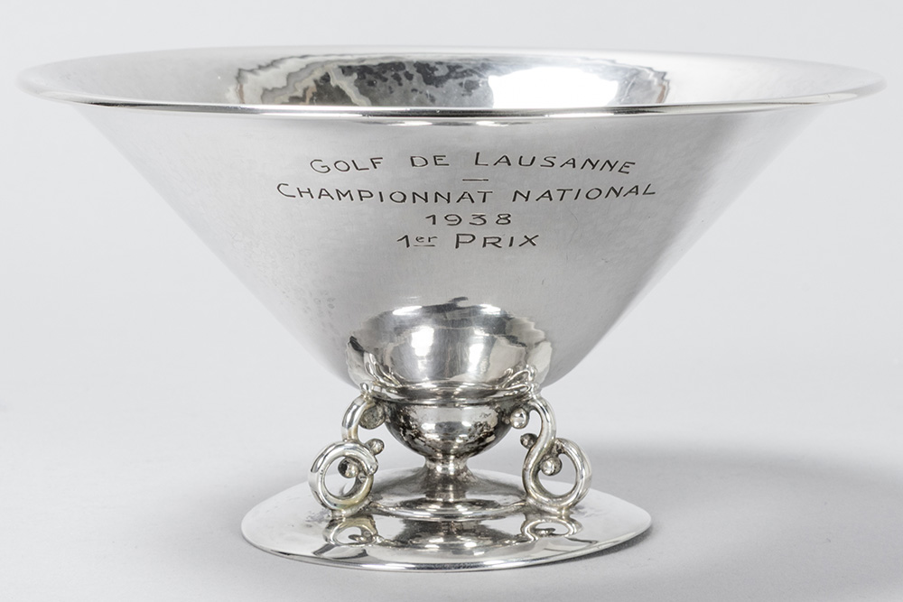 Kleine Art Deco-coupe in massief zilver, gemerkt “Duitsland 835” – diameter : 15 cm – gewicht : 204 gram – ca 1930/35