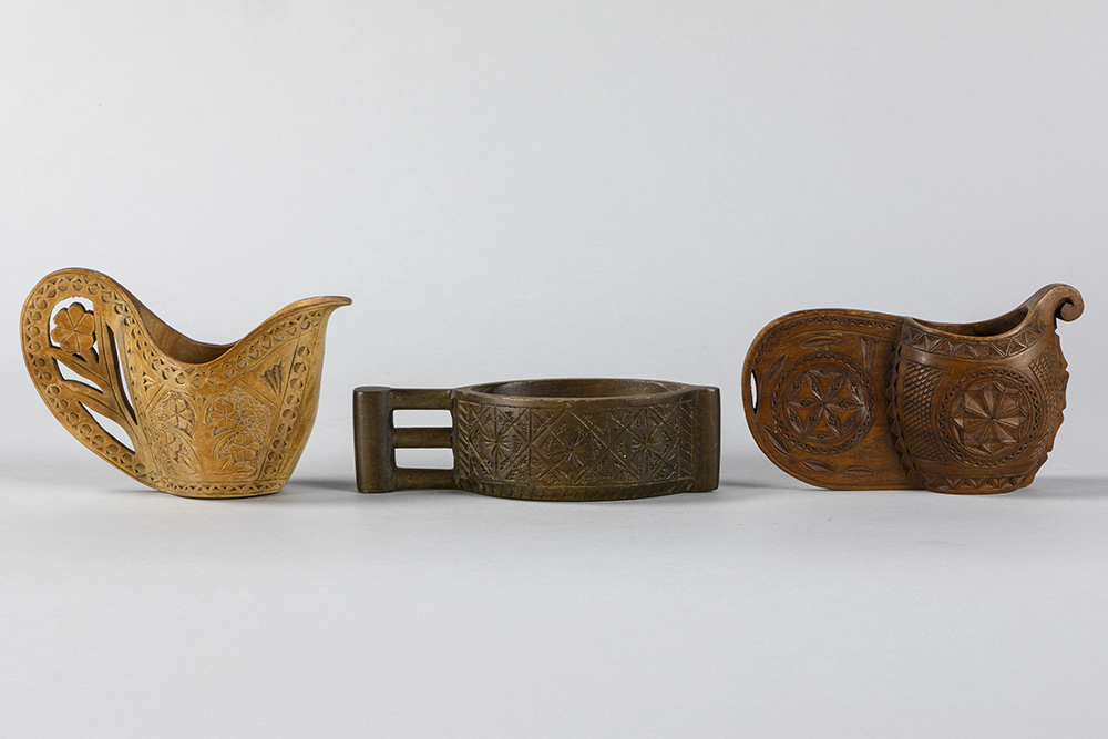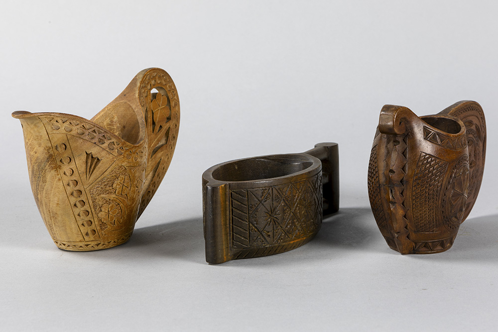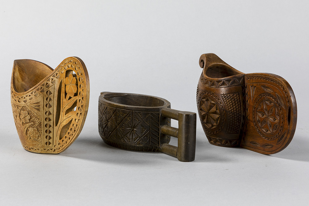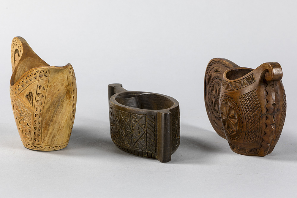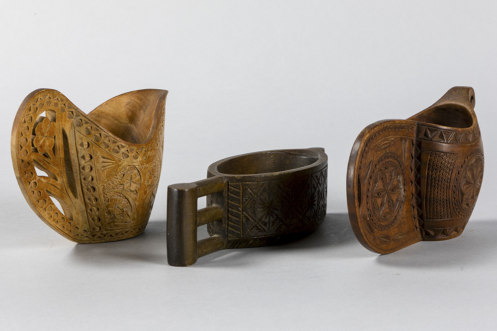 three pieces of Scandinavian Folk Art, so called “Wedding cups”