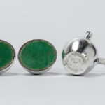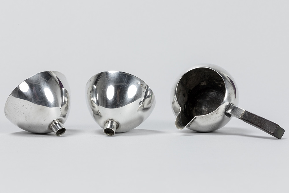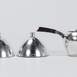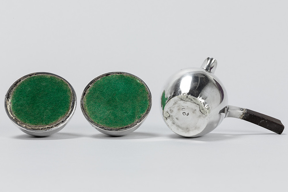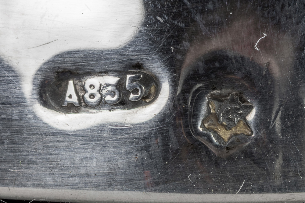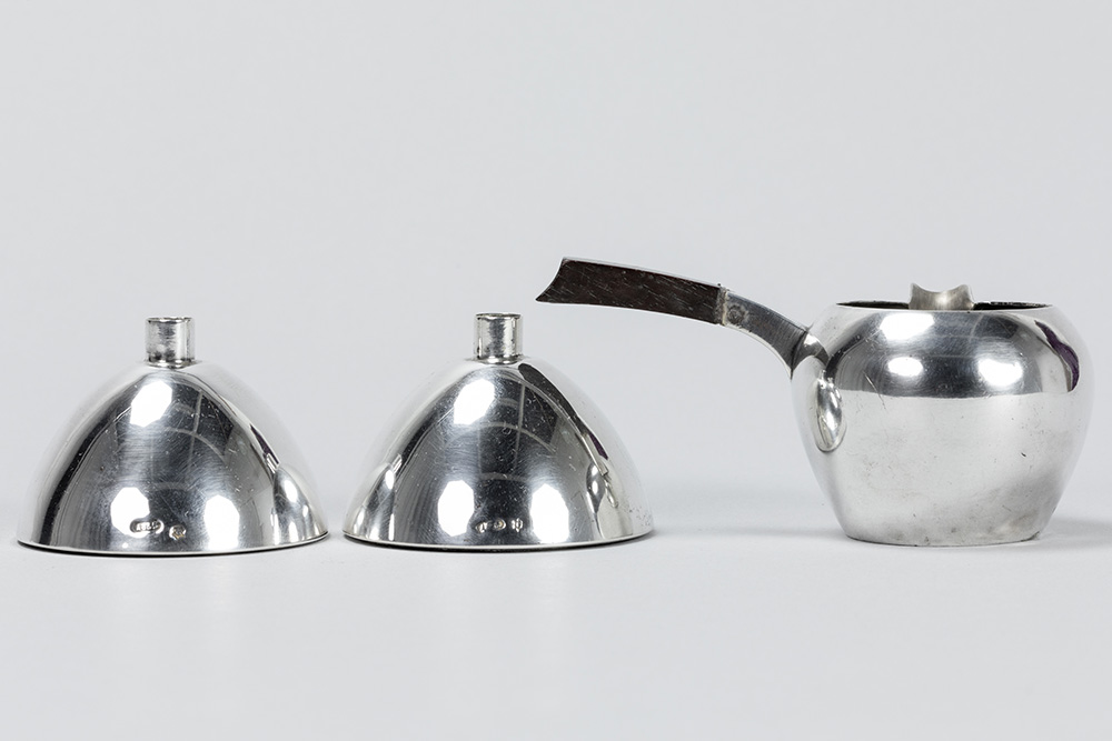 Lot (3) massief zilver met een paar Belgische Art Deco-kaarsenhouders (gewicht : 189 gram) gemerkt “A835” (4 cm hoog) en een Frans kannetje van Puiforcat (5 cm hoog en gewicht : 45 gram)