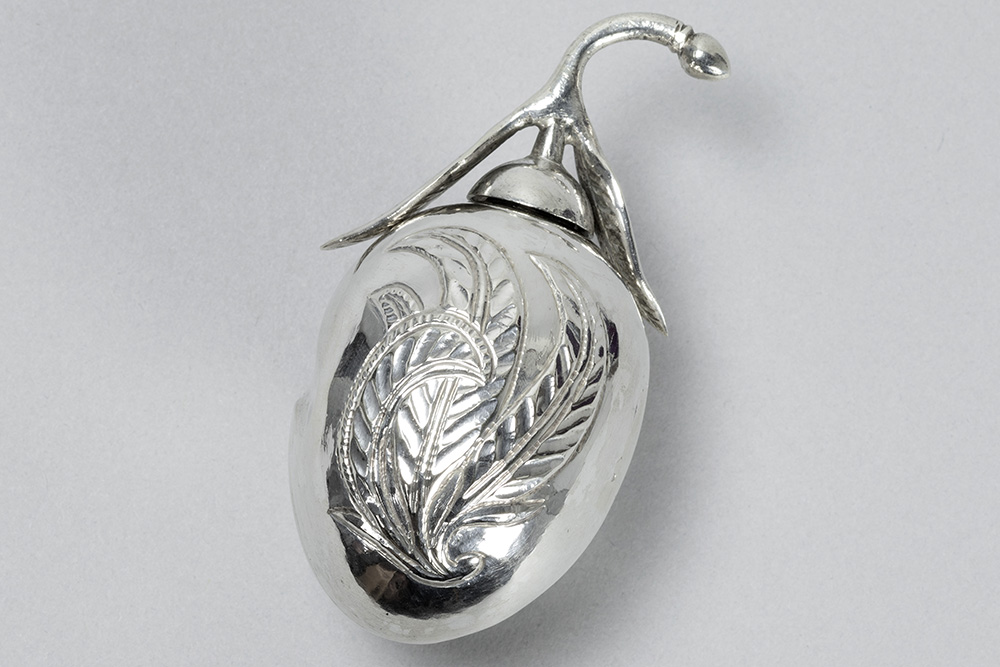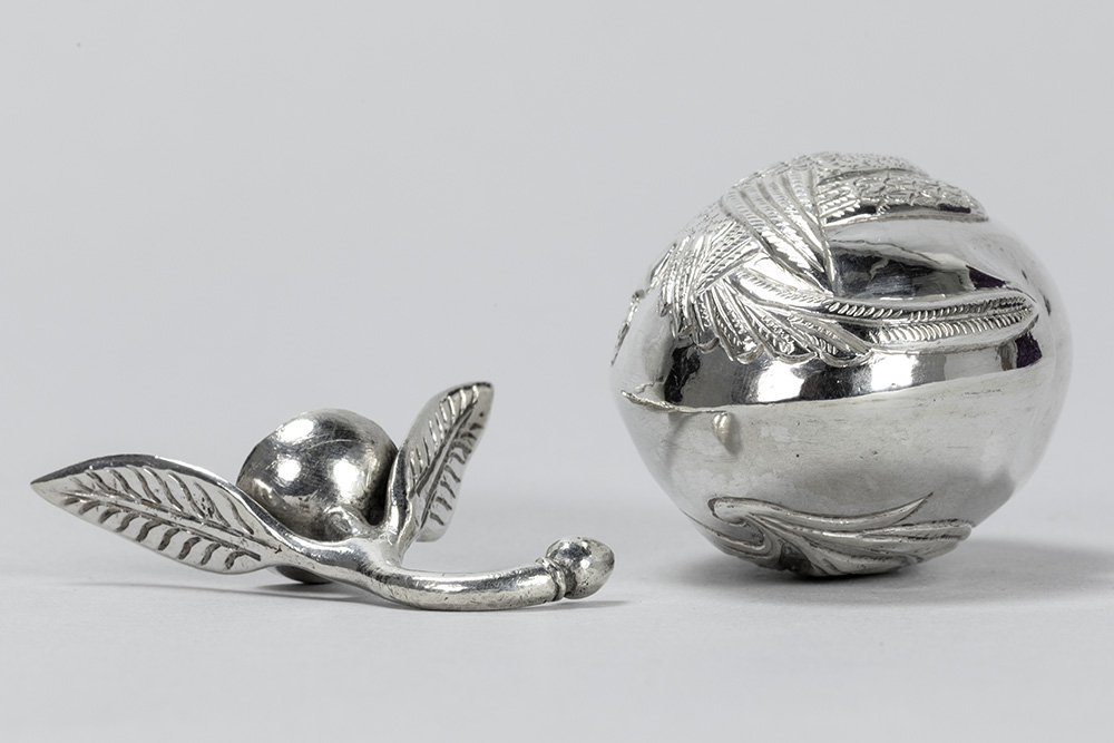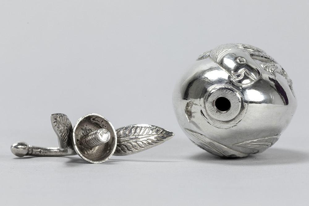 Flacon in de vorm van een vrucht en met afschroefdop – in massief zilver – gewicht : 74 gram