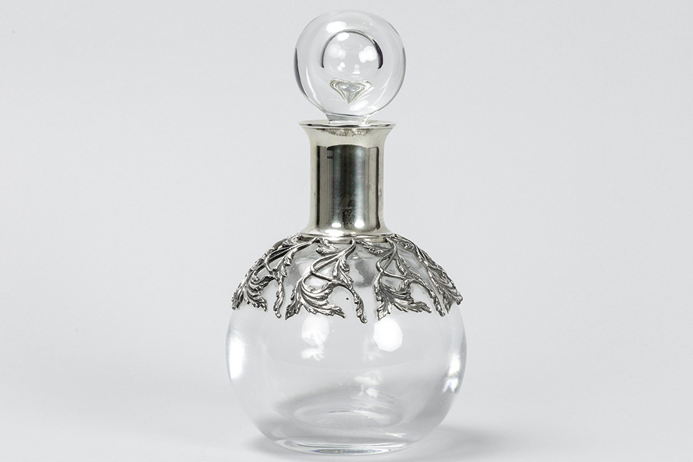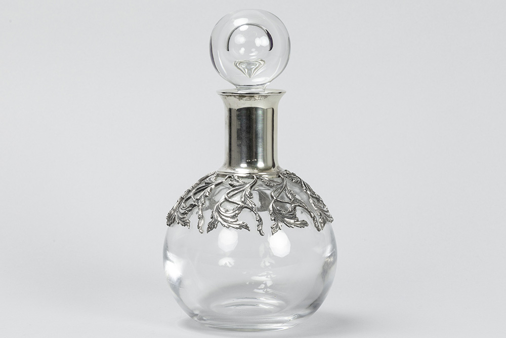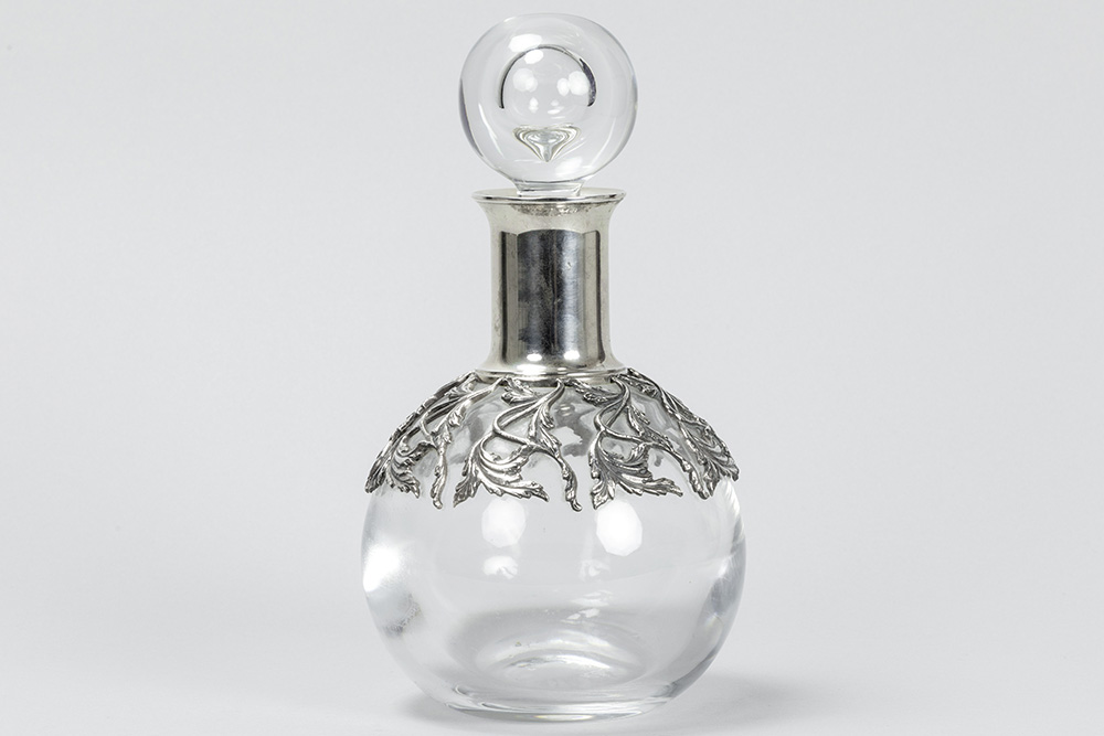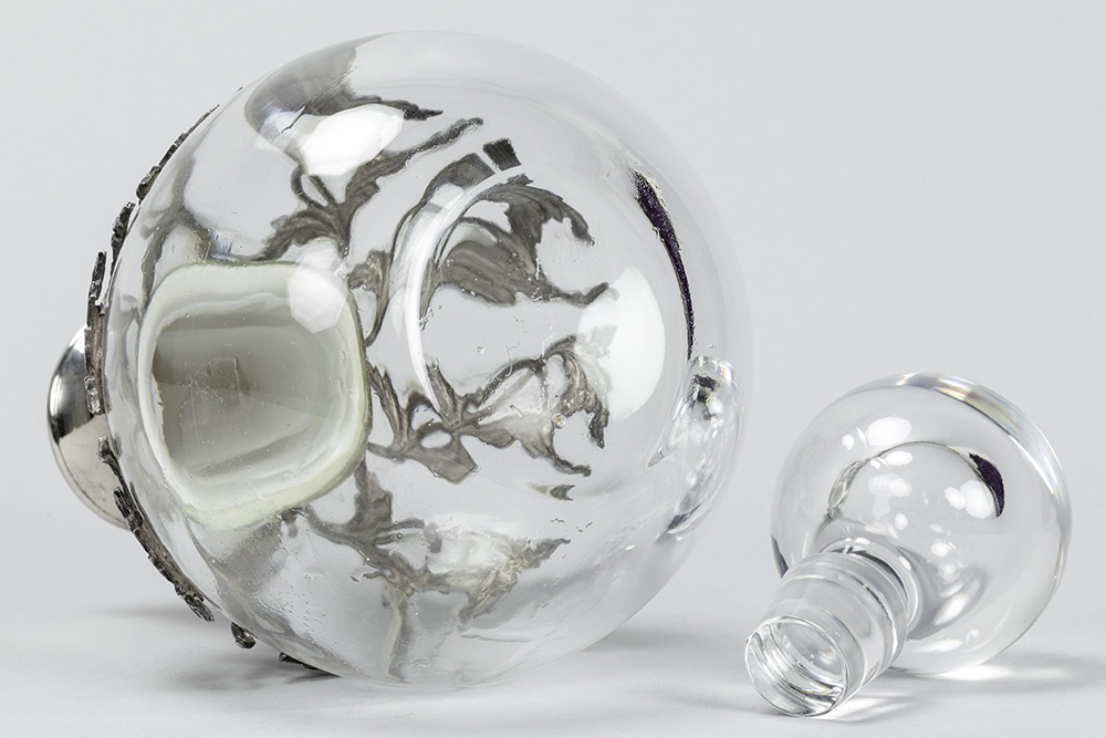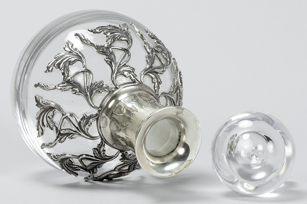 Ferruccio Falsini signed decanter in clear crystal and “Firenze 800” marked silver