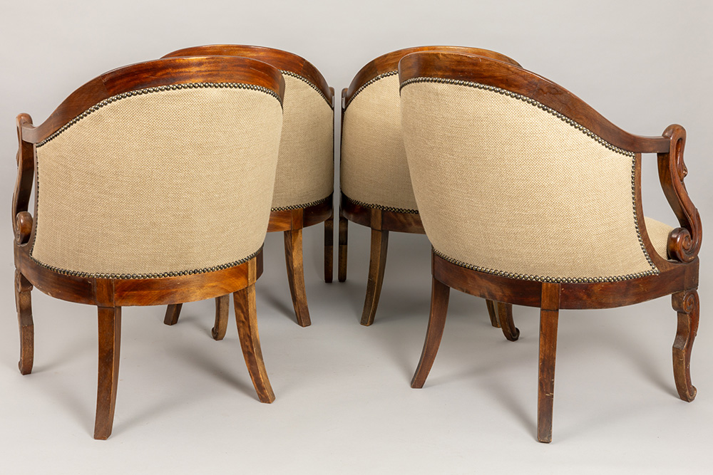 Serie van vier zetels met crapaud-model in Empirestijl telkens met een zwanenhals aan de armleuning – 79 x 53 x 60 cm