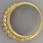 Ring in geelgoud (18 karaat) met een zgn gematelasseerd sierstuk bezet met ca 0,25 karaat witte (E/F/G) kwaliteitsbriljant (Vs) – gewicht : 8,8 gram