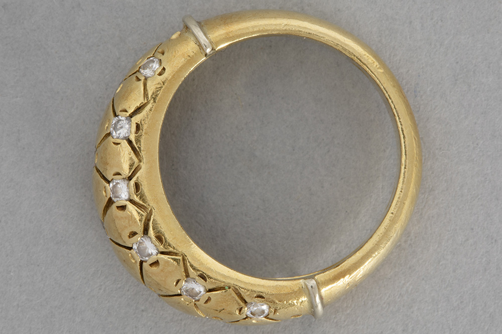ring in yellow gold (18 carat) with ca 0,25 carat of small high quality brilliant cut diamonds