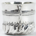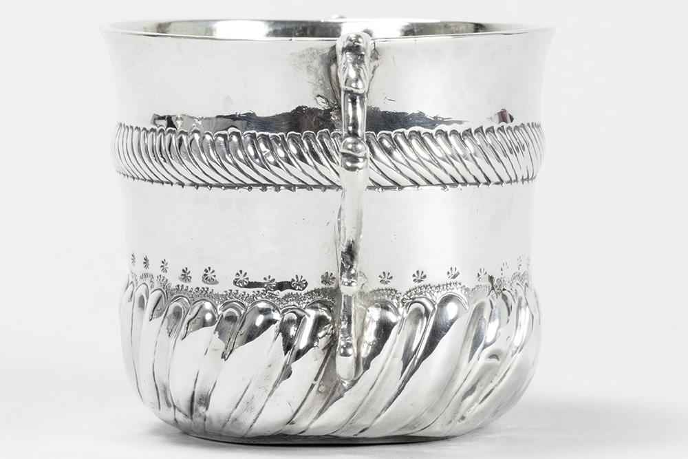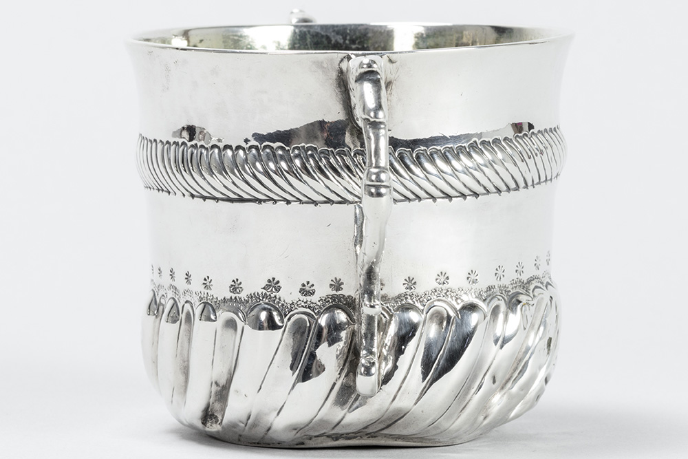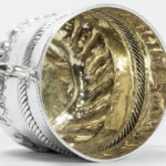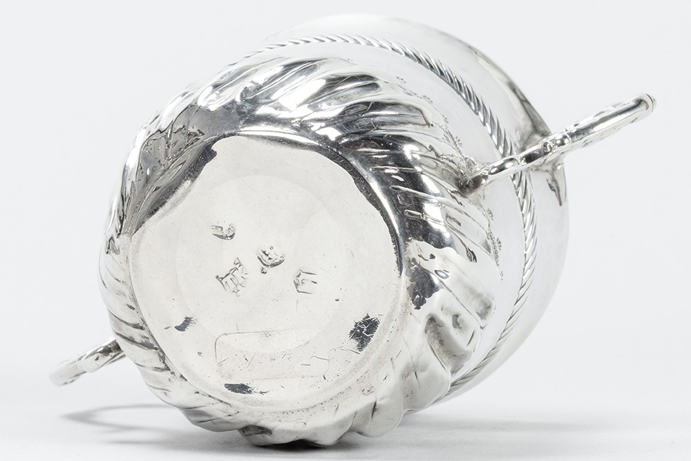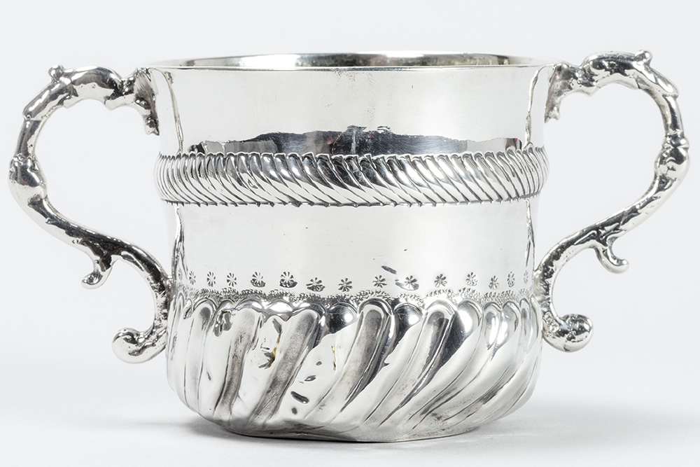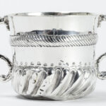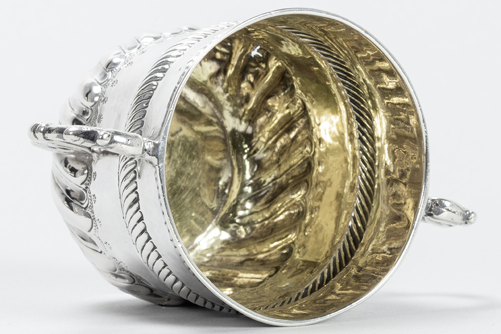 THOMAS KELDEN zeldzame zeventiende eeuwse Engelse zgn “porringer” in massief zilver, gemerkt “London 1695”, met typische model en ornamentiek en met vergulde binnenkant – hoogte : 7,5 cm – gewicht : 107 gram getekend