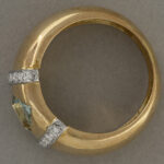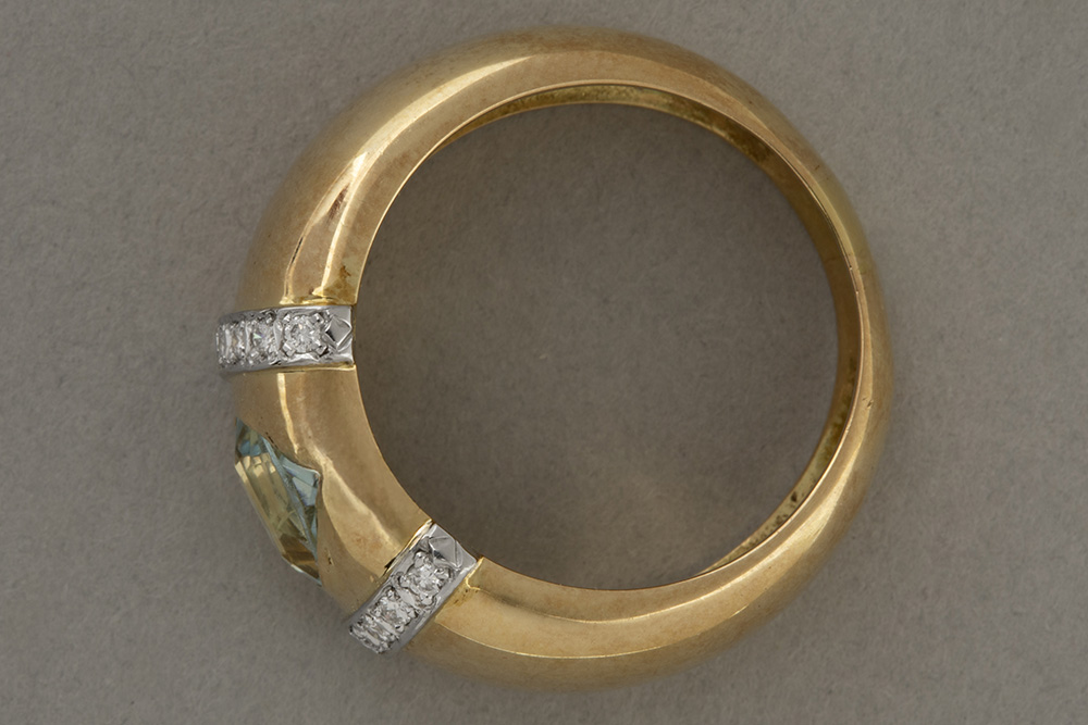 Ring in geelgoud (18 karaat) bezet met een lichtblauwe topaas en zeker 0,20 karaat blauwwitte (E/F) kwaliteitsbriljant (Si) – gewicht : 7,2 gram