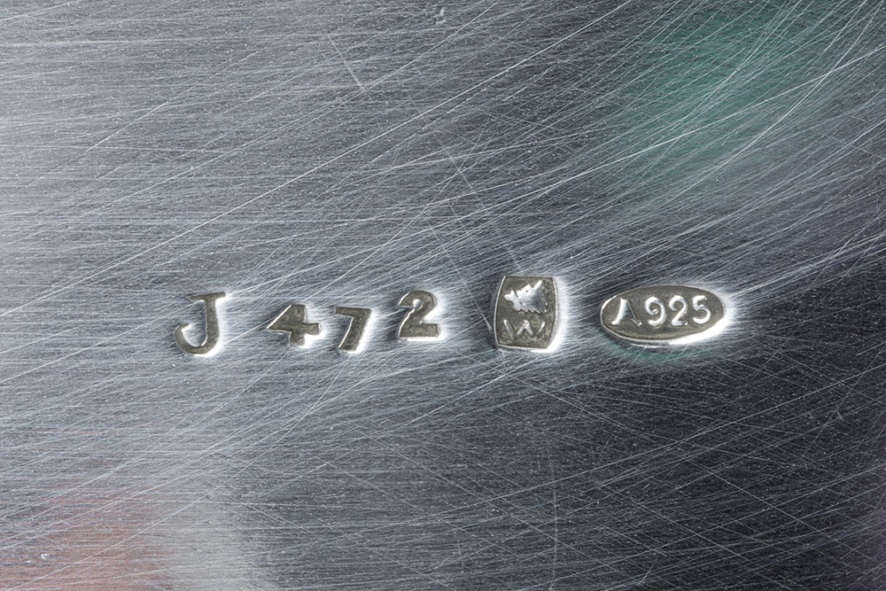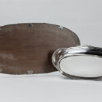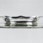 WOLFERS ovale milieu de table met een jardinière (1502 gram) en een spiegelplateau – in massief zilver, gemerkt “925” – totale breedte : 64 cm – breedte en gewicht van de coupe : 46 cm getekend