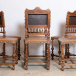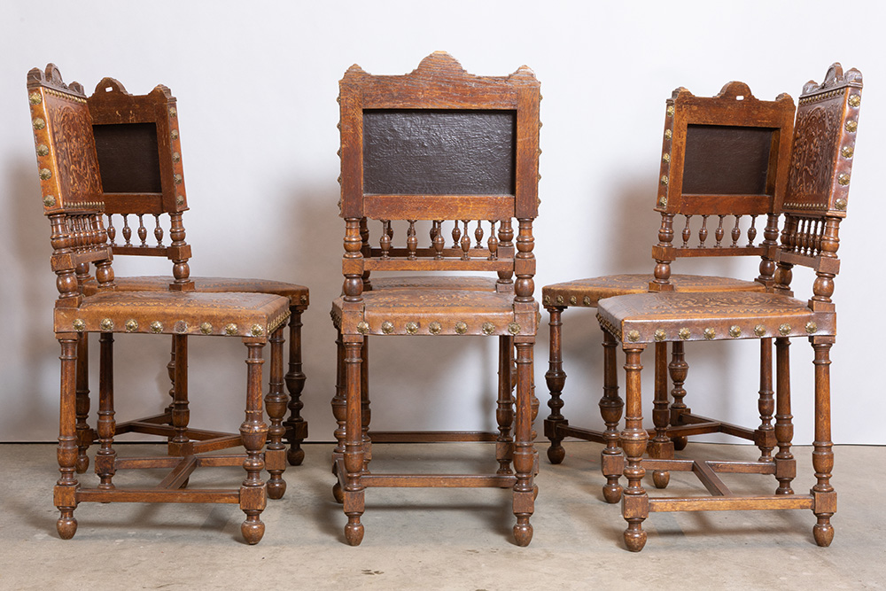 series of six 19th Cent. chairs in oak with original leather upholstery