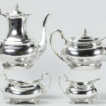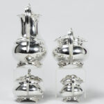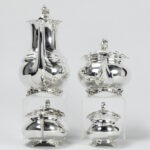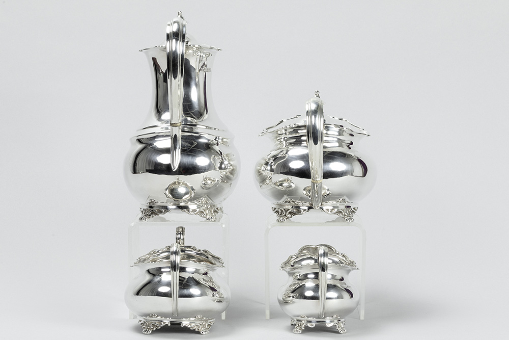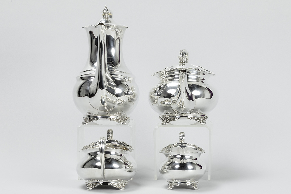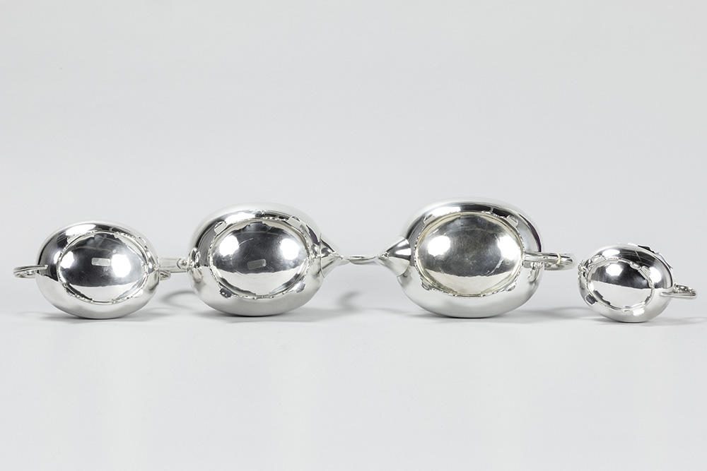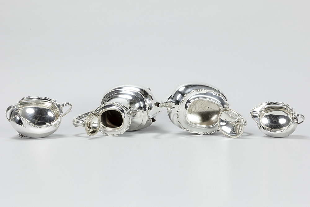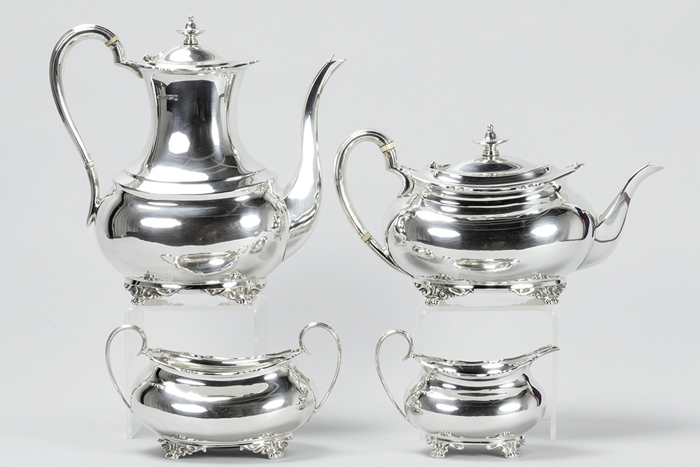 ATKIN BROTHERS vierdelig koffie- en theestel in massief zilver, gemerkt “925 – Sheffield 1909”, met een vrij klassieke vormgeving – gewicht : 1767 gram getekend