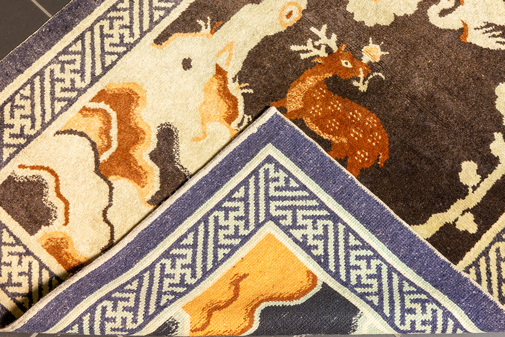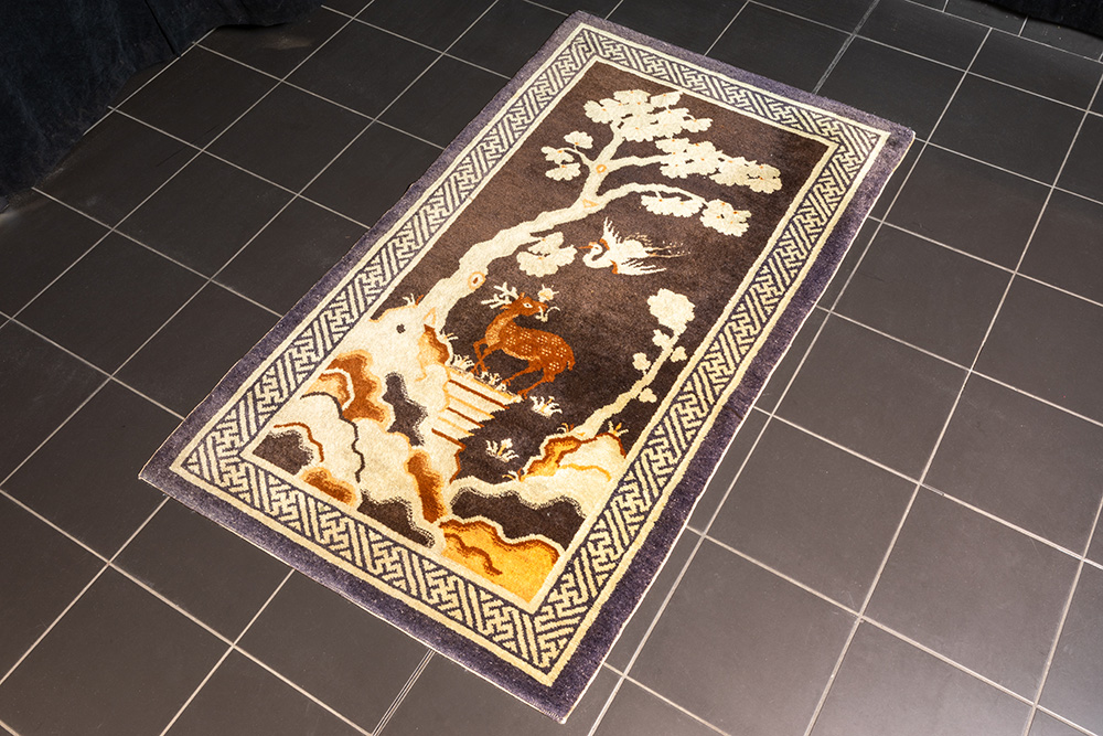 ‘Antiek’ Chinees “Pao Tao” tapijt met tuindecor met hert en vogel – 166 x 96 cm