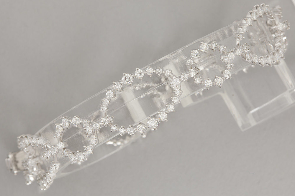 elegant bracelet in white gold (18 carat) with ca 3,85 carat of high quality brilliant cut diamonds