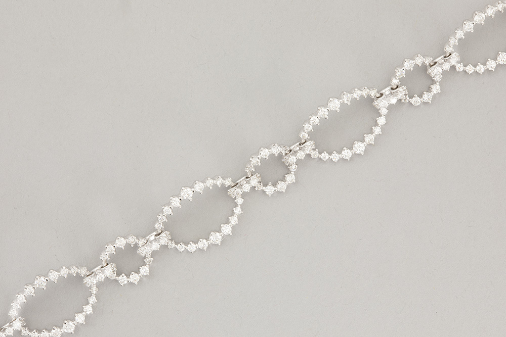 Elegant bracelet in witgoud (18 karaat) met ellipsvormige schakels en bezet met ca 3,85 karaat witte (E/F/G) kwaliteitsbriljant (Vvs/Vs) – gewicht : 14 gram