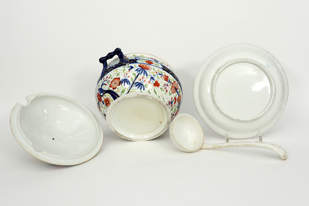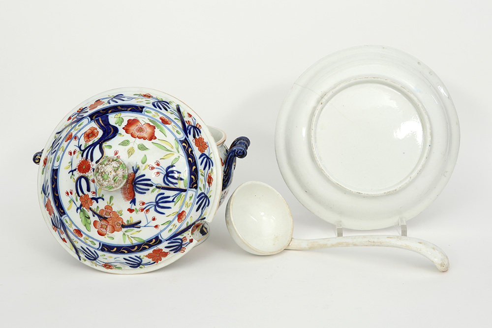 antique presumably English tureen in ceramic with a polychromed decor