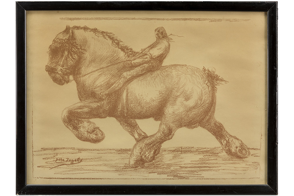 INGELS DOMIEN (1881 – 1946) tekening : “Boerenpaard” – 34 x 47 getekend