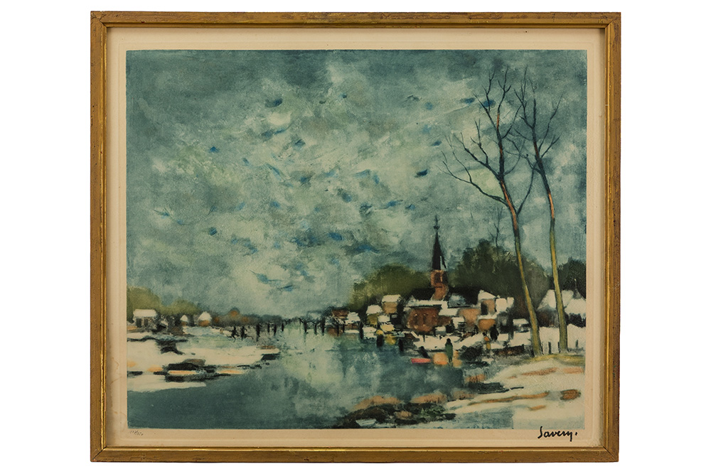 SAVERYS ALBERT (1886 – 1964) kleurets n° 117/350 : “Leiezicht onder de sneeuw” – 50 x 60 getekend