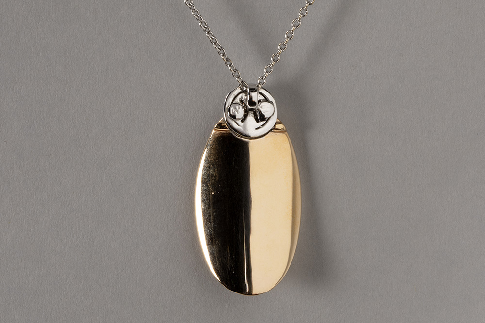 Italian “Centoventuno” signed necklace in pink and white gold (18 carat) with a pendant with ca 0,50 carat of high quality brilliant cut diamonds
